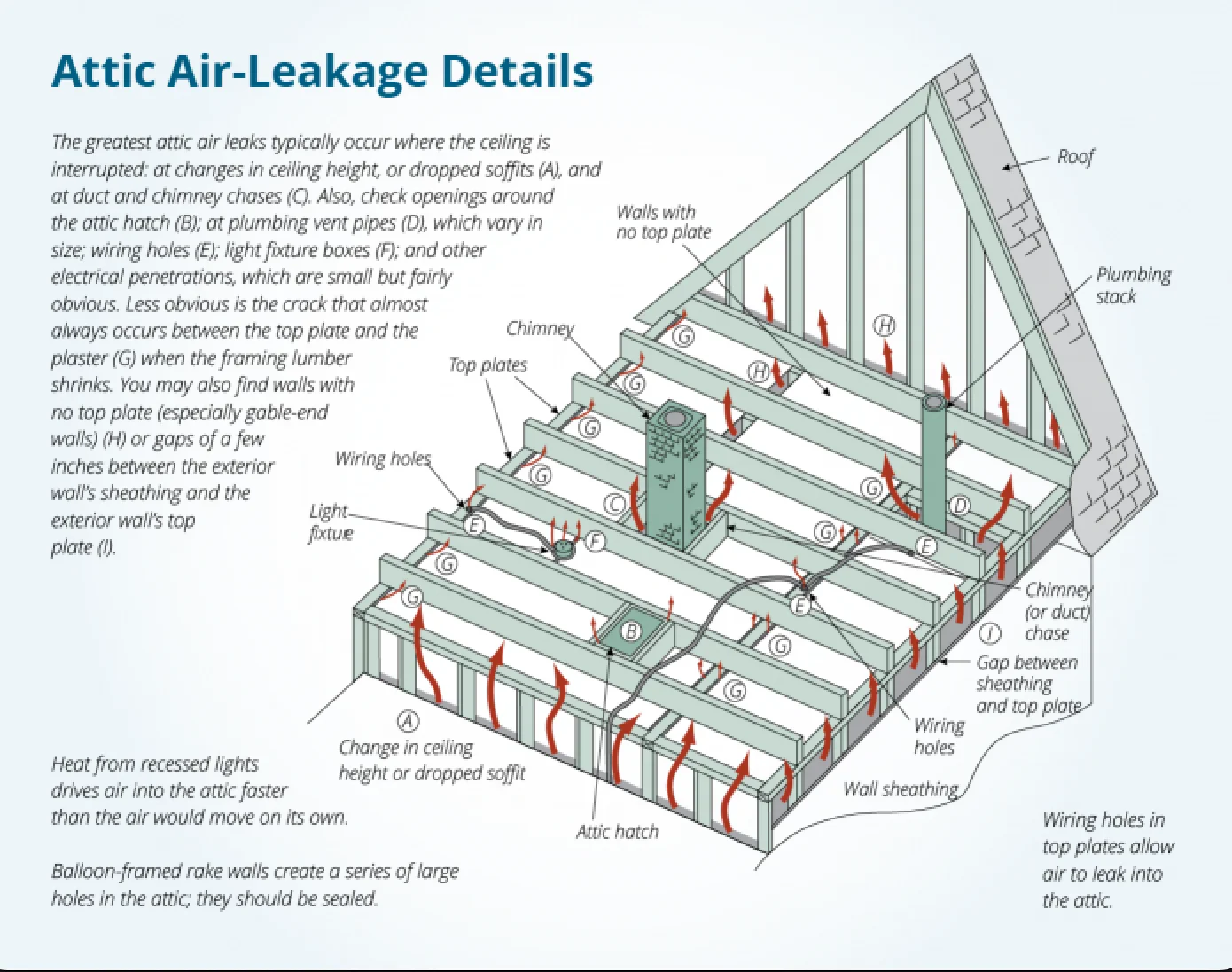 - Inspection of attic and ceiling cavities for weak spots